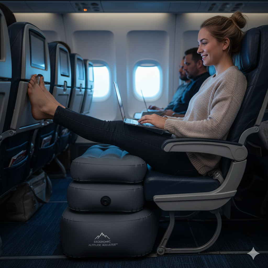 Economy seats weren't designed for human legs. This portable footrest system brings first-class ergonomics to every row.