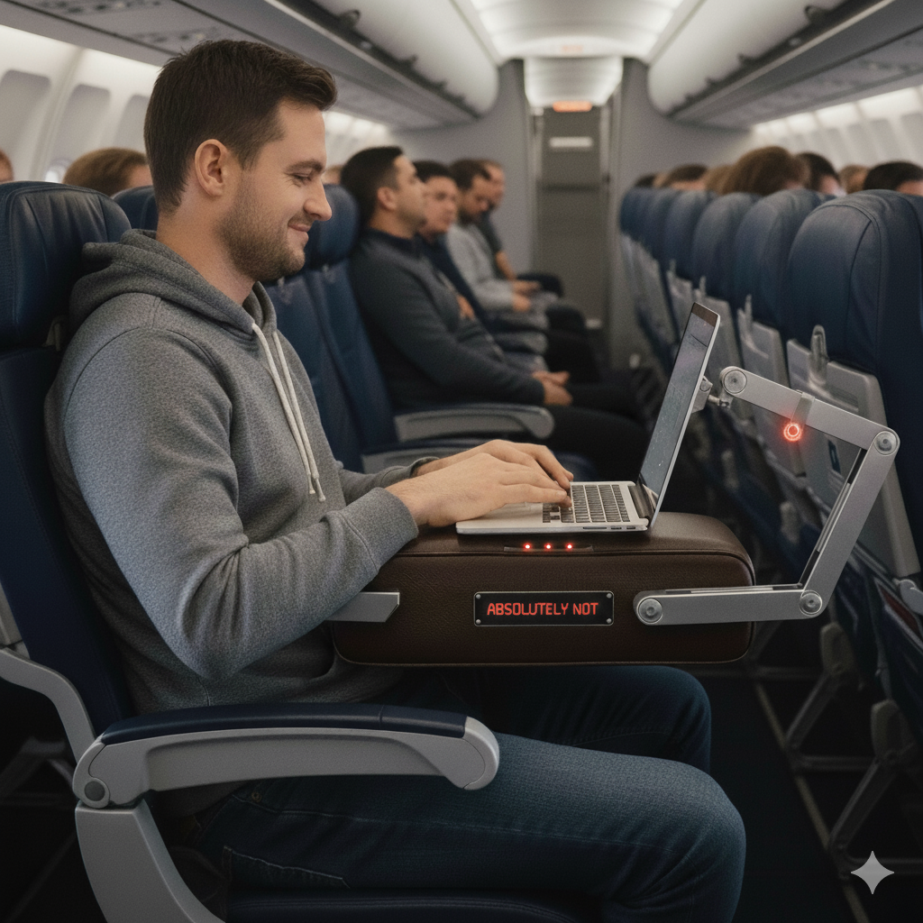 The seat-back war ends now. Our patented anti-recline barrier system protects your laptop, knees, and dignity from aggressive recliners.